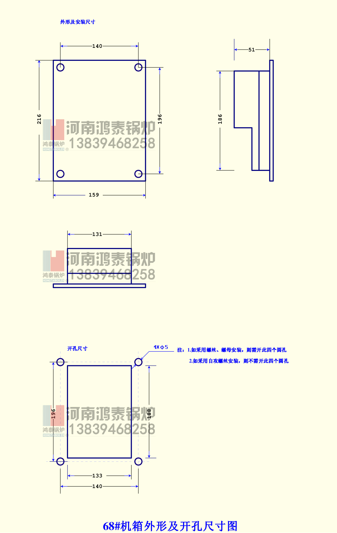 ①按“外形及開孔尺寸圖”開安裝孔,將需接電線從開孔處穿出。