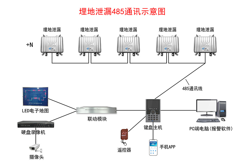 埋地泄漏入侵報(bào)警系統(tǒng)示意圖—485訊通
