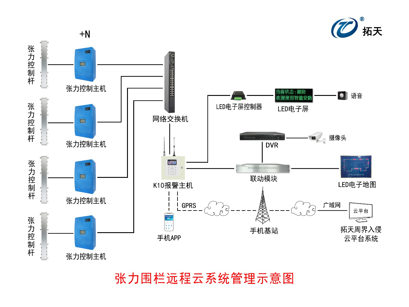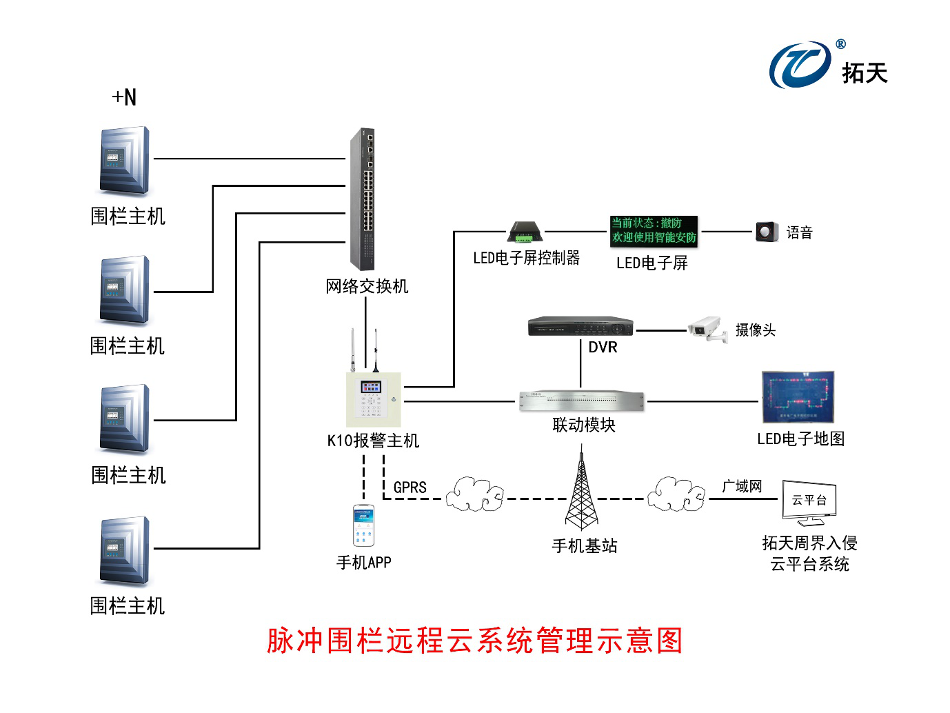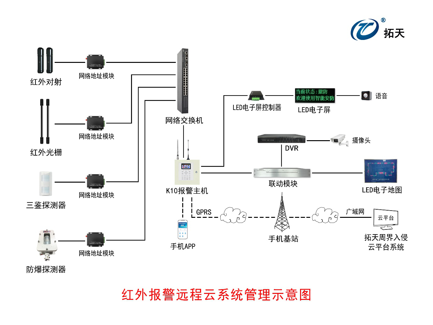 可與周界報(bào)警設(shè)備 GPRS報(bào)警主機(jī)通過手機(jī)卡連廣域網(wǎng)云服務(wù)器